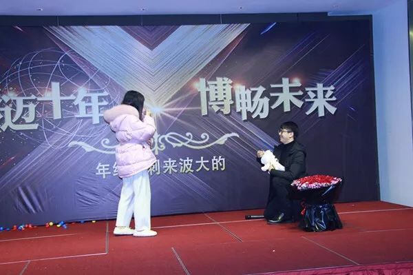 晚上18:28分,年會(huì)晚宴隨著主持人的出場(chǎng)拉開(kāi)序幕,在杰博溫州公司總經(jīng)理、杰博合伙人趙寧先生寄語(yǔ)新年新氣象的精彩祝酒詞中,大家高舉酒杯,歡呼慶祝過(guò)去十年的成長(zhǎng)與成就,憧憬祝福接下來(lái)的十年。隨后,進(jìn)入用餐抽獎(jiǎng)環(huán)節(jié),在熱烈的喝彩、掌聲中,各個(gè)獎(jiǎng)項(xiàng)逐一揭曉,幸運(yùn)兒們激動(dòng)不已、笑容滿面。晚宴在一場(chǎng)浪漫的求婚中進(jìn)入高潮。他們相識(shí)五年、相戀五年,攜手從校園走進(jìn)杰博大家庭,一起努力、共同成長(zhǎng)。這一天,在杰博家人的見(jiàn)證下,約定共同開(kāi)啟美好的明天。