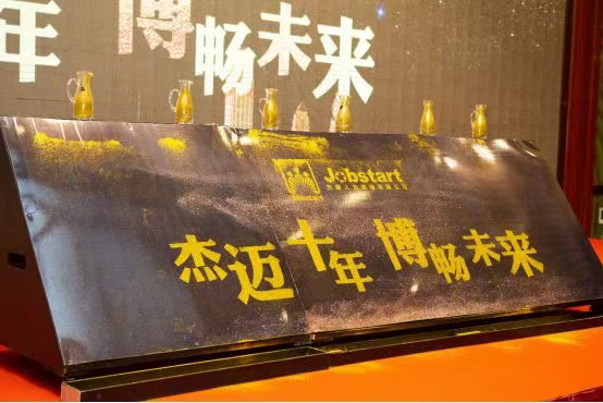 隨后,年會進入了最為激動人心的環(huán)節(jié)——十周年慶典儀式,陳總及幾位領(lǐng)導(dǎo)依次登臺,在背景音樂之下,將象征財富,也象征著輝煌的金沙緩緩倒入啟動臺當中,正如年會的主持人所說:“緩緩淌入的金沙,就像是分布在祖國各地的杰博人,這一刻都匯聚在一起,輝映著未來,杰博十年,光輝無限!”