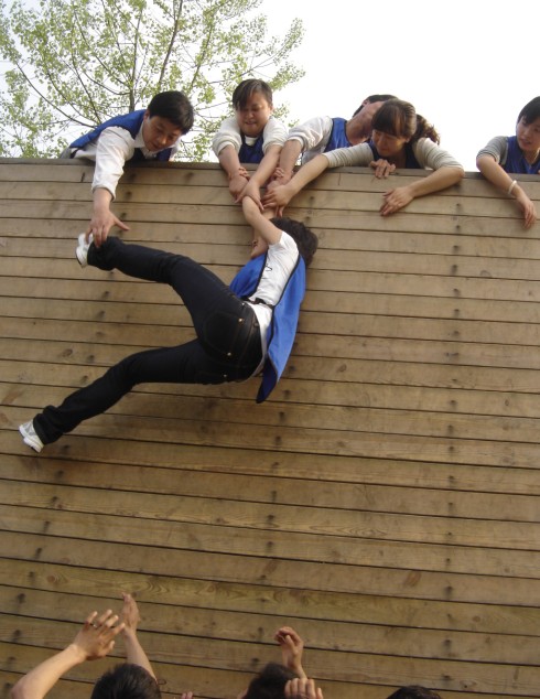 在“畢業(yè)墻”拓展項(xiàng)目拓展訓(xùn)練時(shí),不想說(shuō)學(xué)到了團(tuán)結(jié)的力量是無(wú)窮的,也不想說(shuō)集體的能力是偉大的,更不想說(shuō)人的潛能是無(wú)限的……這個(gè)拓展游戲給于我們大家的,除了感動(dòng),還是感動(dòng)。為第一個(gè)爬上墻頭,堅(jiān)持救上個(gè)一個(gè)又一個(gè)同伴的朋友感動(dòng)!為在下面咬著牙甘當(dāng)基石,讓一個(gè)個(gè)同伴們踏著自己的肩頭求生的朋友感動(dòng)!為指揮大家伙兒逃生,用自己的雙手將同伴們一個(gè)一個(gè)高高舉起的朋友感動(dòng)!直到墻下只剩下了一個(gè)同伴,再?zèng)]有人給他當(dāng)基石供他向上攀爬的時(shí)候,于是,一個(gè)體重較輕的隊(duì)友從墻頭上垂了下來(lái),墻下的隊(duì)友堅(jiān)定的抓住了墻上同伴的手。當(dāng)最后一人成功躍上墻頭的時(shí)候,響起了經(jīng)久不息的掌聲。感動(dòng)中我們知道我們是一個(gè)整體,我們必須互相幫助互相支持才能完成單個(gè)人根本無(wú)法實(shí)現(xiàn)的目標(biāo),在工作中,我們必須把個(gè)人利益服從于公司的利益;我們是一個(gè)整體,是一個(gè)充滿活力不怕困難的整體。