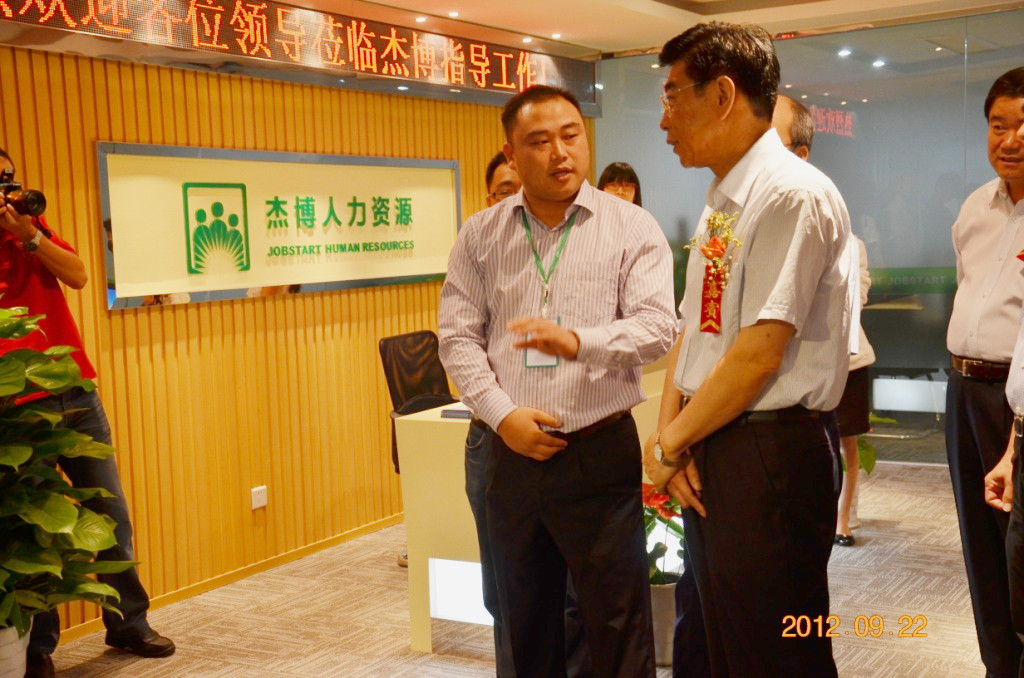 杰博寧波分公司總經(jīng)理王晶燁代表公司向各級領導匯報了杰博的經(jīng)營理念和運營現(xiàn)狀。王曉初副部長在聽取王總匯報后,首先肯定了杰博在勞務派遣方面取得的成績,并親切詢問杰博未來幾年的發(fā)展規(guī)劃。最后,王曉初副部長表示希望杰博繼續(xù)立足寧波、服務長三角,做強做大、與園區(qū)共同發(fā)展,發(fā)揮集聚產(chǎn)業(yè)、拓展服務、培育市場、打造高地的四大功能,成為基礎人才服務和經(jīng)營性人才服務齊頭并進的人力資源綜合解決方案供應商。