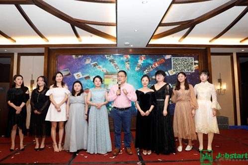 圖為杰博執(zhí)行董事陳龍云先生和待字閨中小姐姐們的合影
